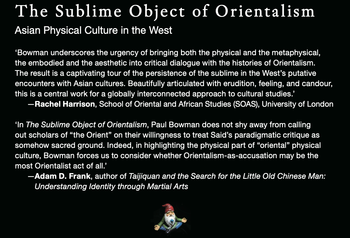 Finally, I am delighted with the wonderful endorsements from Professor Rachel Harrison from SOAS and Professor Adam Frank from Arkansas, whose first book - an autoethnography of learning taijiquan in Shanghai in the 1980s - was such an inspiration: